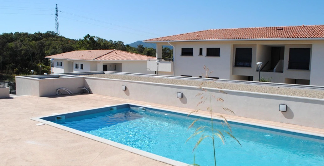 Ensemble de 15 appartements divisé en 2 bâtiments allant du T2 au T4 avec piscine collective sur la commune de Porto Vecchio.