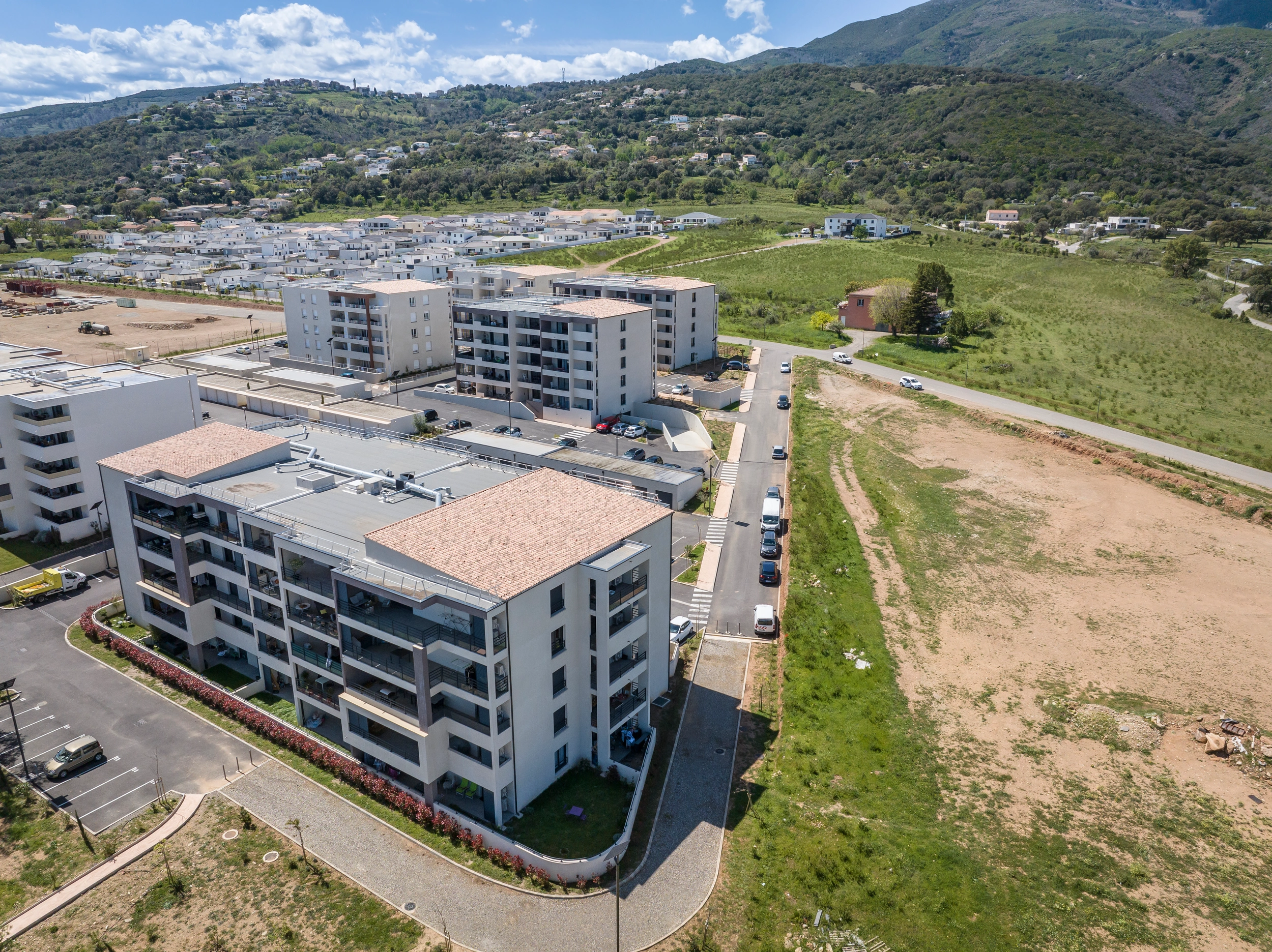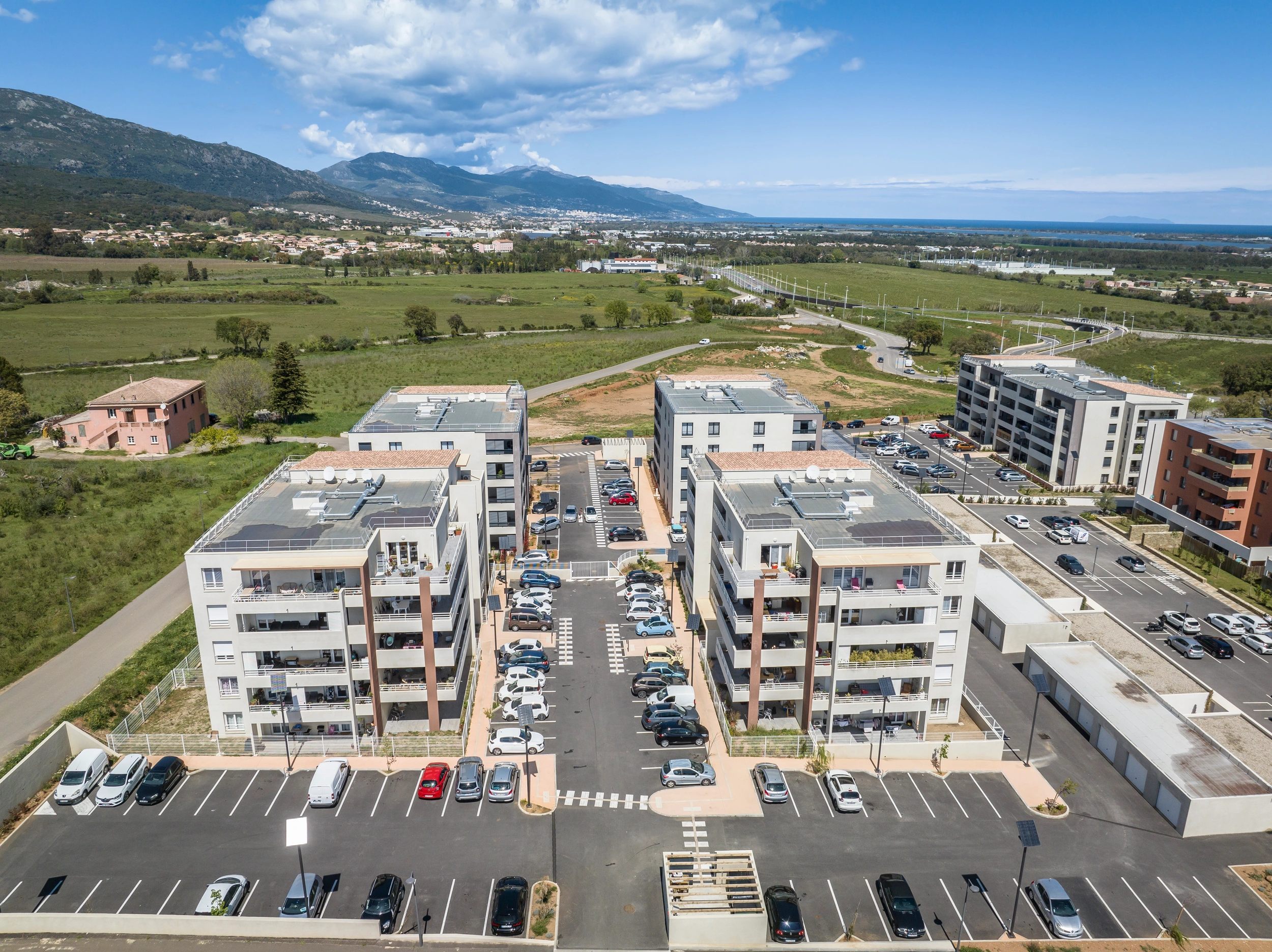Opération mixte de 158 logements - 5 bâtiments de 4 étages comprenant 107 appartements en accession dont 19 pour primo accédant et 51 logements sociaux. Ensemble allant du T1 au T4 sur la commune de Borgo.