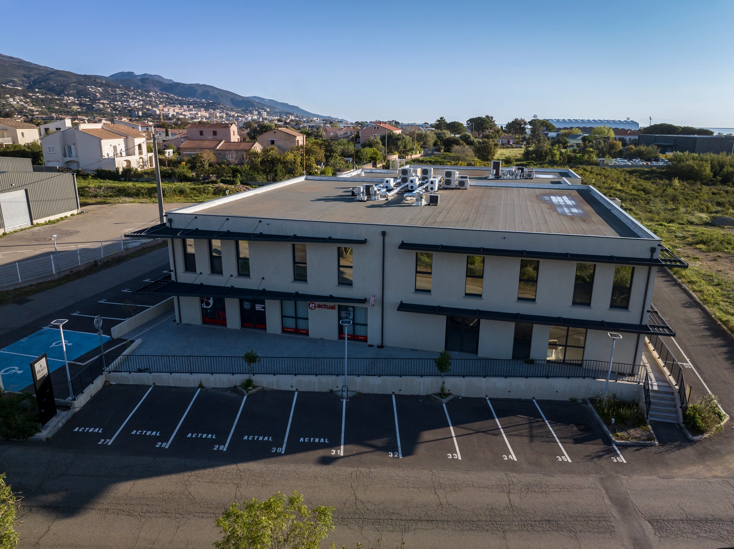 1 600m² de locaux commerciaux de 120 à 290m² situés en plein coeur de la commune de Furiani.